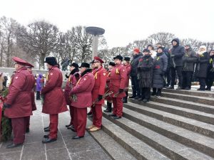 В День 82-й годовщины полного освобождения Ленинграда от фашистской блокады на Пискаревском мемориальном кладбище прошла торжественно-траурная церемония возложения цветов и венков к подножию монумента «Мать-Родина».
